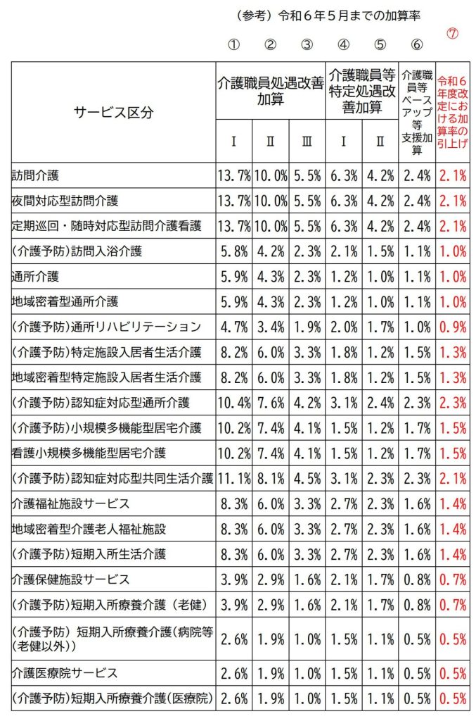 令和6年度からの処遇改善加算では、加算率も引き上げられました。